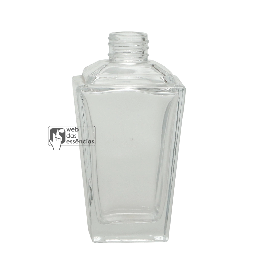O frasco é esculpido em vidro transparente de alta qualidade, que permite uma visão clara do líquido perfumado dentro.